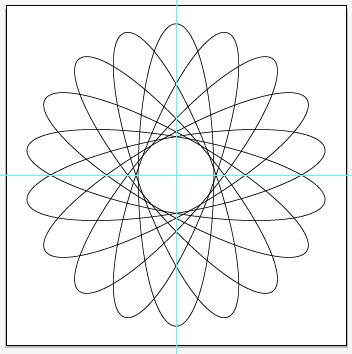 1.绘制缤纷的花瓣,首先打开平面设计中的AI软件,然后建立一个高度和宽度都是180毫米的新文件。拉出两条辅助线,一横一竖直接在文档中心定位。选择椭圆工具(L),创建椭圆,填充无色,边框黑色,并把它放到文件的中心,椭圆高160毫米,宽40毫米。